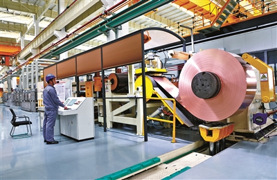 在宁波宝新不锈钢有限公司的精密带车间内,厚度仅为0.025毫米的精密箔钢向世界展示着宁波制造的硬核实力——配上1米的宽幅,它已是目前全球同等厚度中宽幅最大的精密箔钢产品,可广泛应用于航空航天、电子信息、能源等领域。