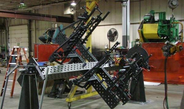 在现代焊接生产中,人们对焊接的质量越来越高,然而优秀的焊接工人却越来越难找。随着电子技术、计算机技术、数控及机器人技术的发展,自动焊接机器人, 从开始用于生产以来,其技术已日益成熟。焊接机器人主要包括机器人和焊接设备两部分。但是焊接设备目前采用的工装平台几乎还是传统的普通平板平台。完全不适应现在变化多样多品种多规格的产品状况。采用性能优越的机器人焊接工装平台夹具对焊接生产有极大的提高。
