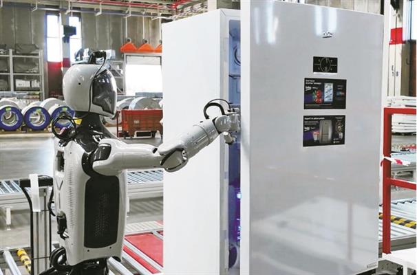 机器人移动至冰箱触控屏前,高精度轻量化仿人臂流畅执行指令,点击精度达0.1毫米;随后行至冰箱工位前,平稳打开冰箱门,高效完成一系列质检任务。这是昨天在欧洲家电龙头企业倍科(BEKO)土耳其生产基地里的